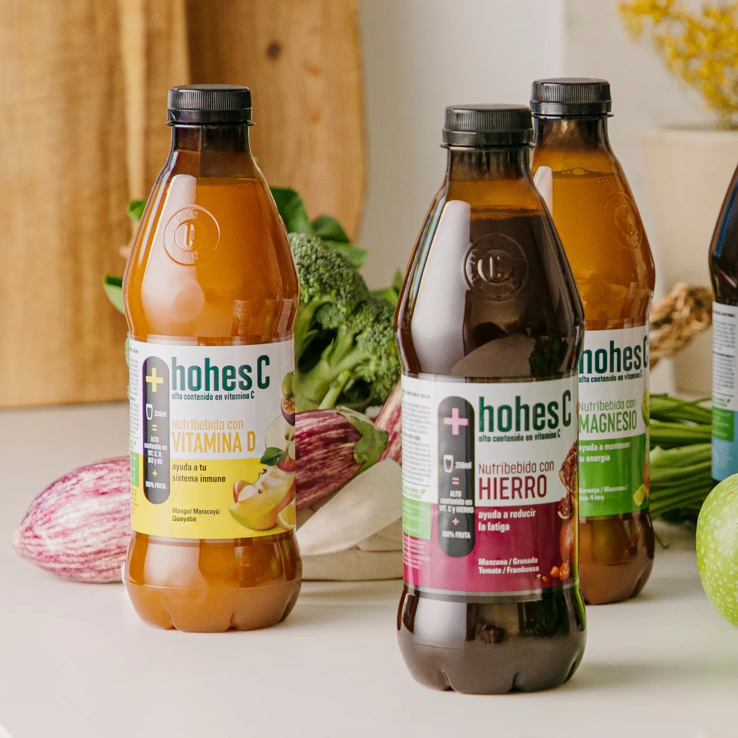 3. Incluye 2 botellas de hohes C Nutribebida Hierro y con el 100% de Vitamina C. Fortalece tu sistema inmune y reduce la fatiga sin dejar de lado el sabor: manzana, frambuesa, tomate y granada se mezclan para una bebida que se disfruta en todo momento.